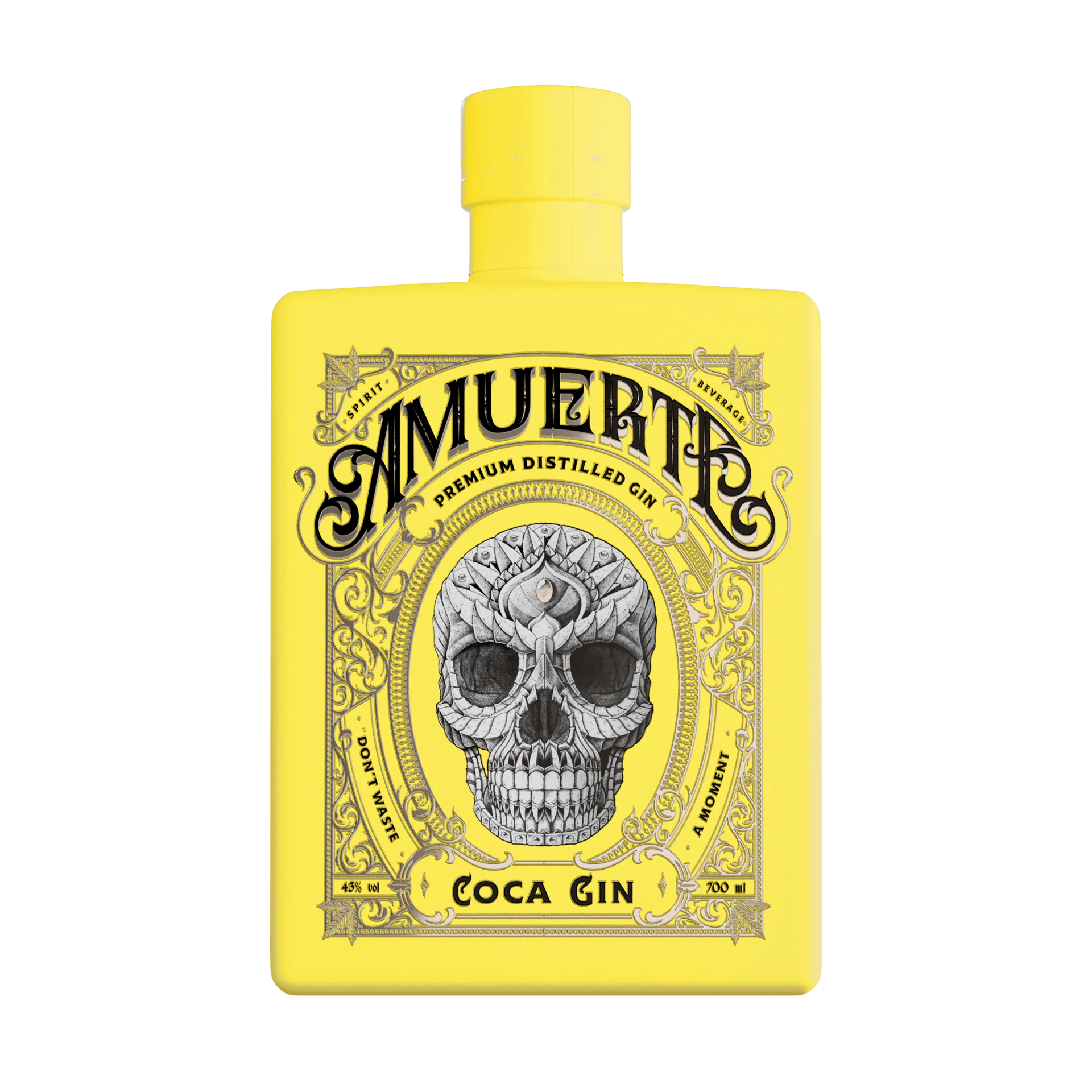 AMUERTE Coca Leaf Gin Yellow 70cl is een opvallende en unieke gin die wordt geproduceerd in België. Het is de tweede variant van het merk Amuerte, dat bekend staat om het gebruik van cocabladeren in hun gins.