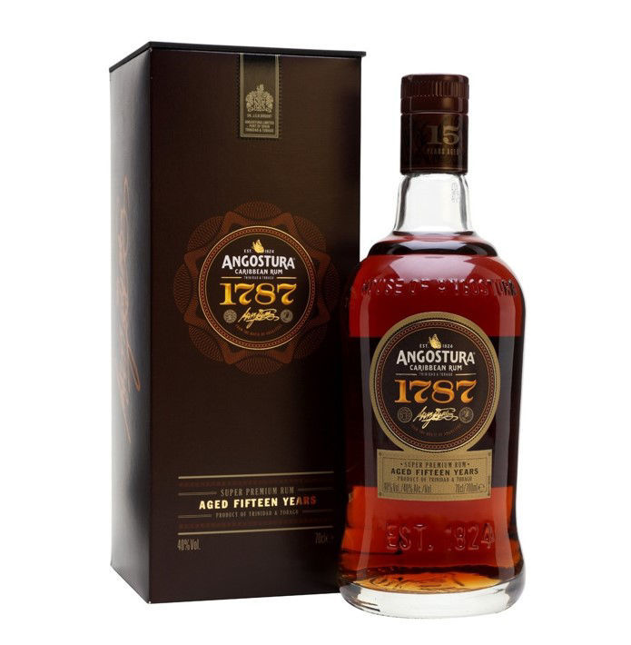 ANGOSTURA® 1787 is een premium rum die vijftien jaar lang heeft gerijpt. Deze rum, geproduceerd in Trinidad en Tobago, is een eerbetoon aan het eerste suikerrietlandgoed van het eiland. De rum heeft een diepe mahoniekeur met bronskleurige accenten en een rijke, complexe neus van banaan, gedroogde vruchten en eik.