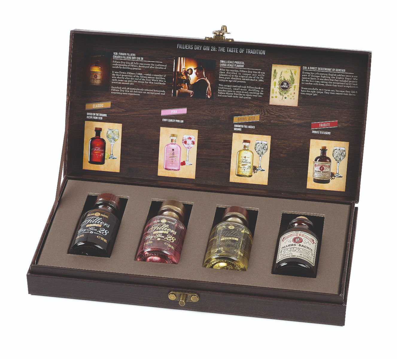 De collectie bevat doorgaans vier van de meest kenmerkende whisky's van Filliers: