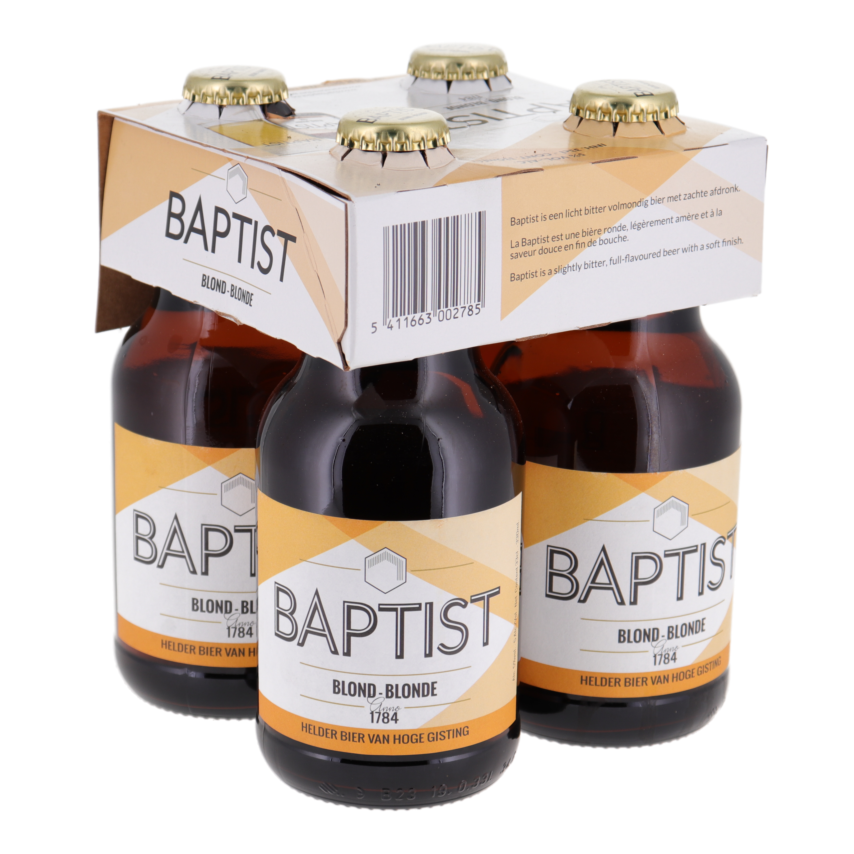 Baptist blond is een helder bier van hoge gisting, licht verfrissend met een volle smaak. Een eerbetoon aan Jan Baptist de Bruyne, stichter van de brouwerij in 1784.