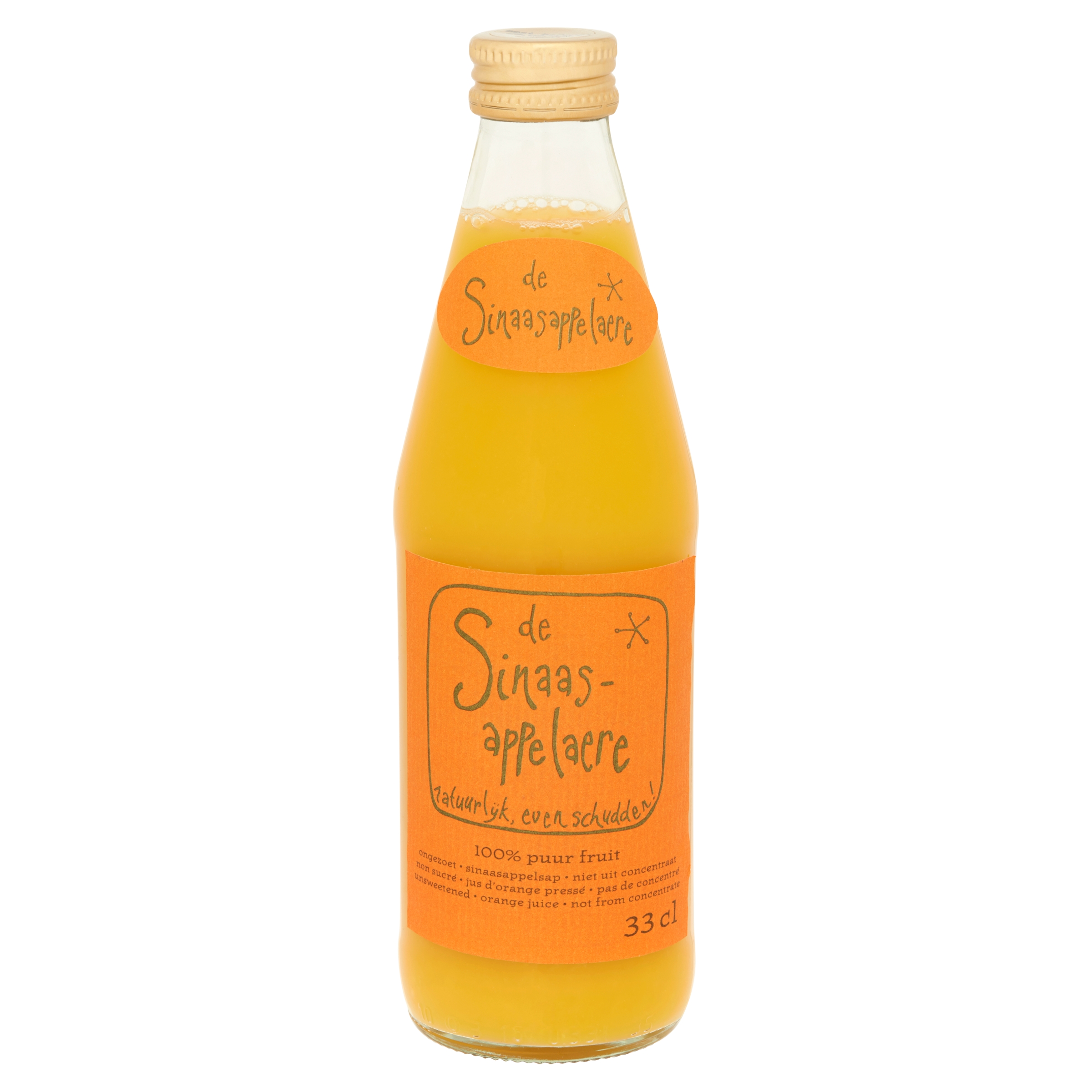 Vers geperst sinaasappelsap zonder toevoegingen of conserveringsmiddelen.