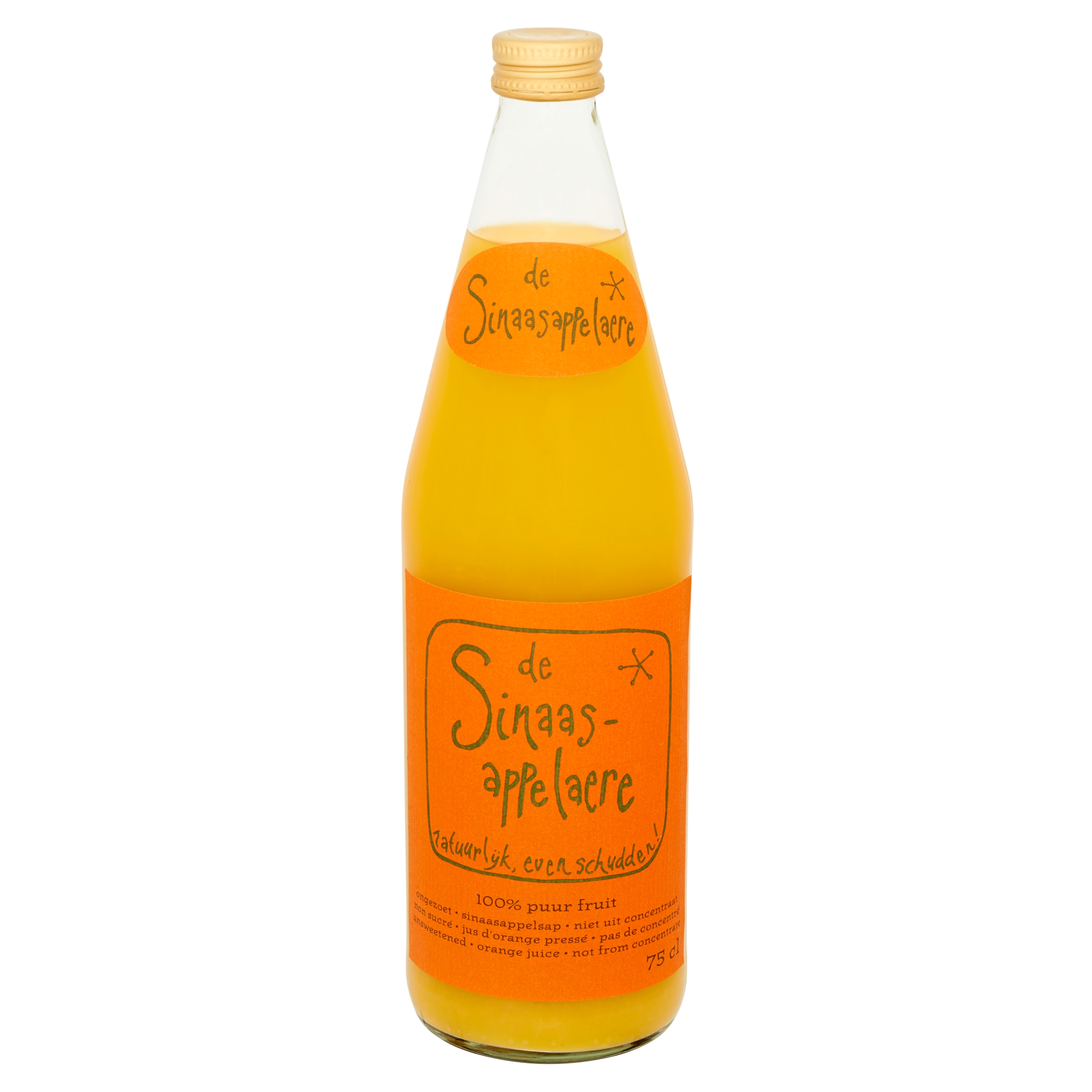 Vers geperst sinaasappelsap zonder toevoegingen of conserveringsmiddelen.