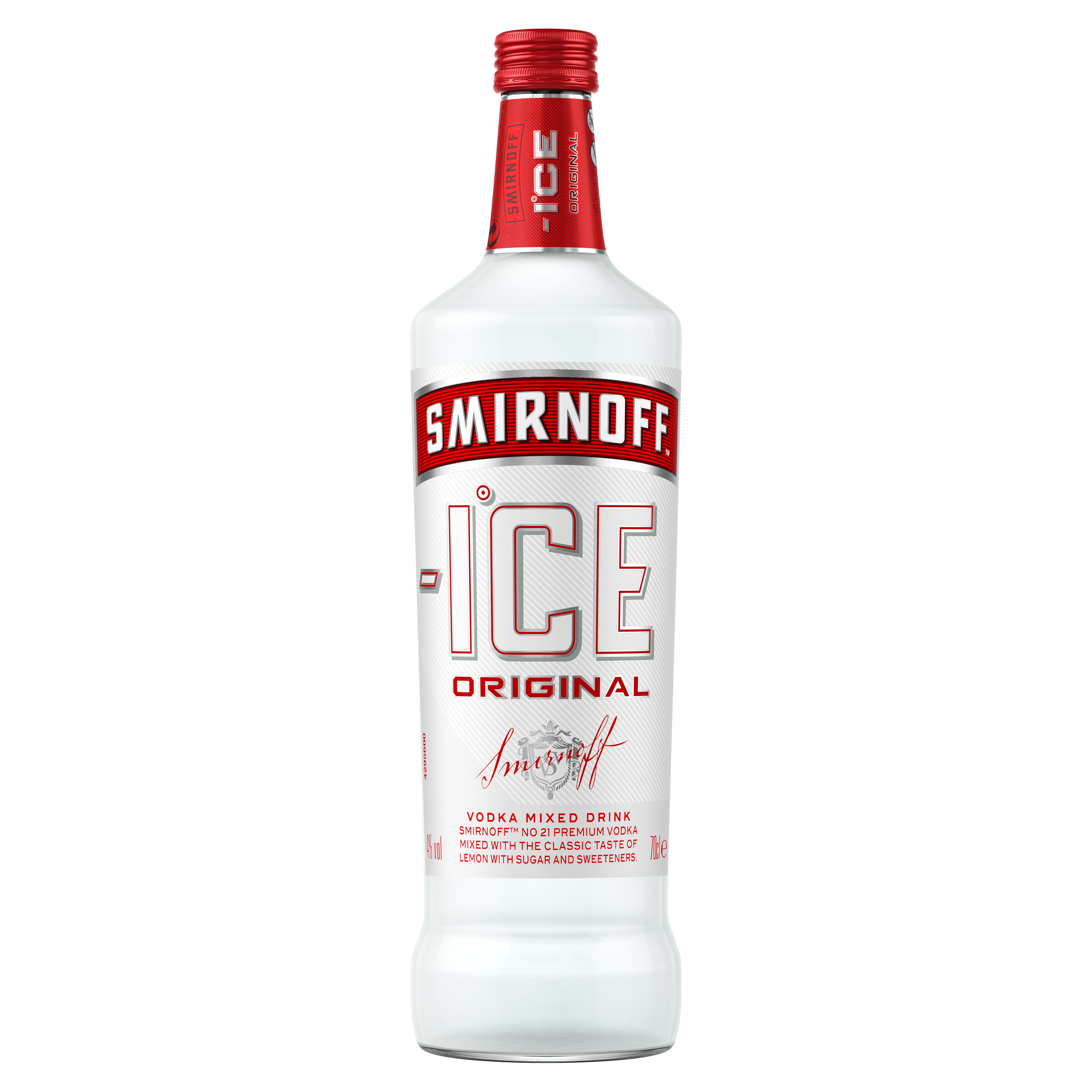 Smirnoff Ice is een vooraf gemixte vodkadrank. Gemaakt met Smirnoff No.21 Vodka met de klassieke smaak van limoen en daardoor een eigentijdse en verkwikkende smaak. Oorspronkelijk komt de familie Smirnov uit Rusland. Vader Pjotr startten tijdens het Tsaristische Regime zijn eigen vodka distilleerderij. Zoon Vladimir vluchtte tijdens de Oktoberrevolutie via Parijs naar Amerika waar hij de Smirnoff Vodka aan de man wist te brengen. Uiteindelijk werd het in de jaren 60, de meest hippe drank in Hollywood. Deze Smirnoff variant, de premix, heeft een alcoholpercentage van 4% en je drinkt dit rechtstreeks uit het stijlvolle flesje of ijskoud met ijs in een longdrink.