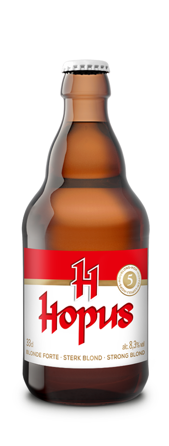 Hopus is een sterk blond boer met een unieke en originele neus dankzij 5 hopvariëteiten. Mengeling van aroma's met moutige, bloemige, citrus en fruitige toetsen.